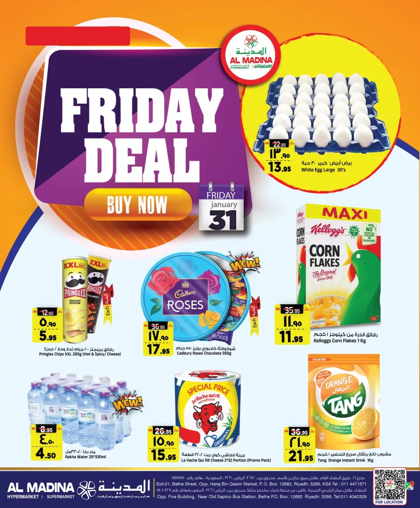 عروض المدينة هايبر ماركت الجمعة 31 يناير 2025 توفر لك تخفيضات مميزة على المنتجات الغذائية حيث تشمل العروض خصومات على الفواكه المجمدة و حليب اللوز العضوي وزيت الزيتون البكر الممتاز كما تتوفر عروض على اللحوم الطازجة و الدواجن المحلية والمأكولات البحرية الطازجة مثل السلمون والروبيان