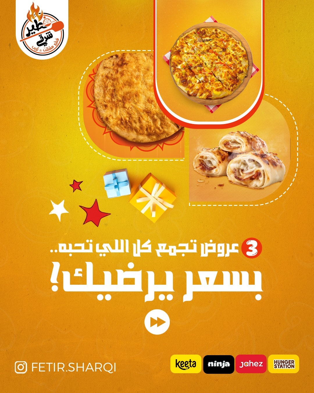 يقدم لكم مطعم فطير شرقي 3 عروض ما تتفوت من و انت عليك تختار يلي يعجبك منها