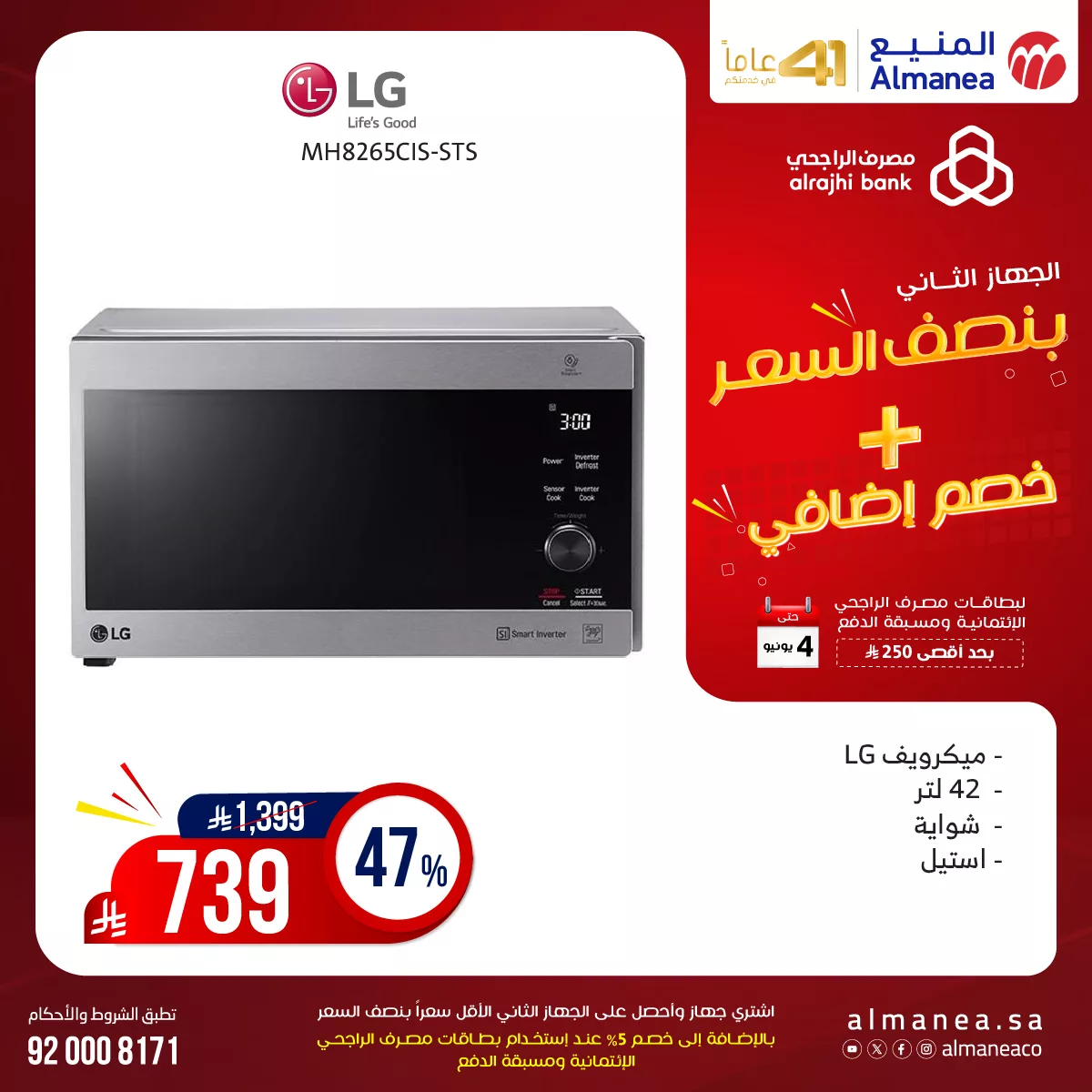 عروض المنيع تقدم تخفيضات مميزة على مجموعة من الأجهزة الكهربائية التي تلبي احتياجات كل منزل عصري حيث تتنوع المنتجات بين المايكروويف والخلاطات والمفارم مما يمنح المستهلك خيارات متعددة لتجهيز المطبخ بأفضل الماركات العالمية بجودة عالية وتصاميم أنيقة كما تتيح عروض المنيع إمكانية شراء الجهاز الثاني بنصف السعر