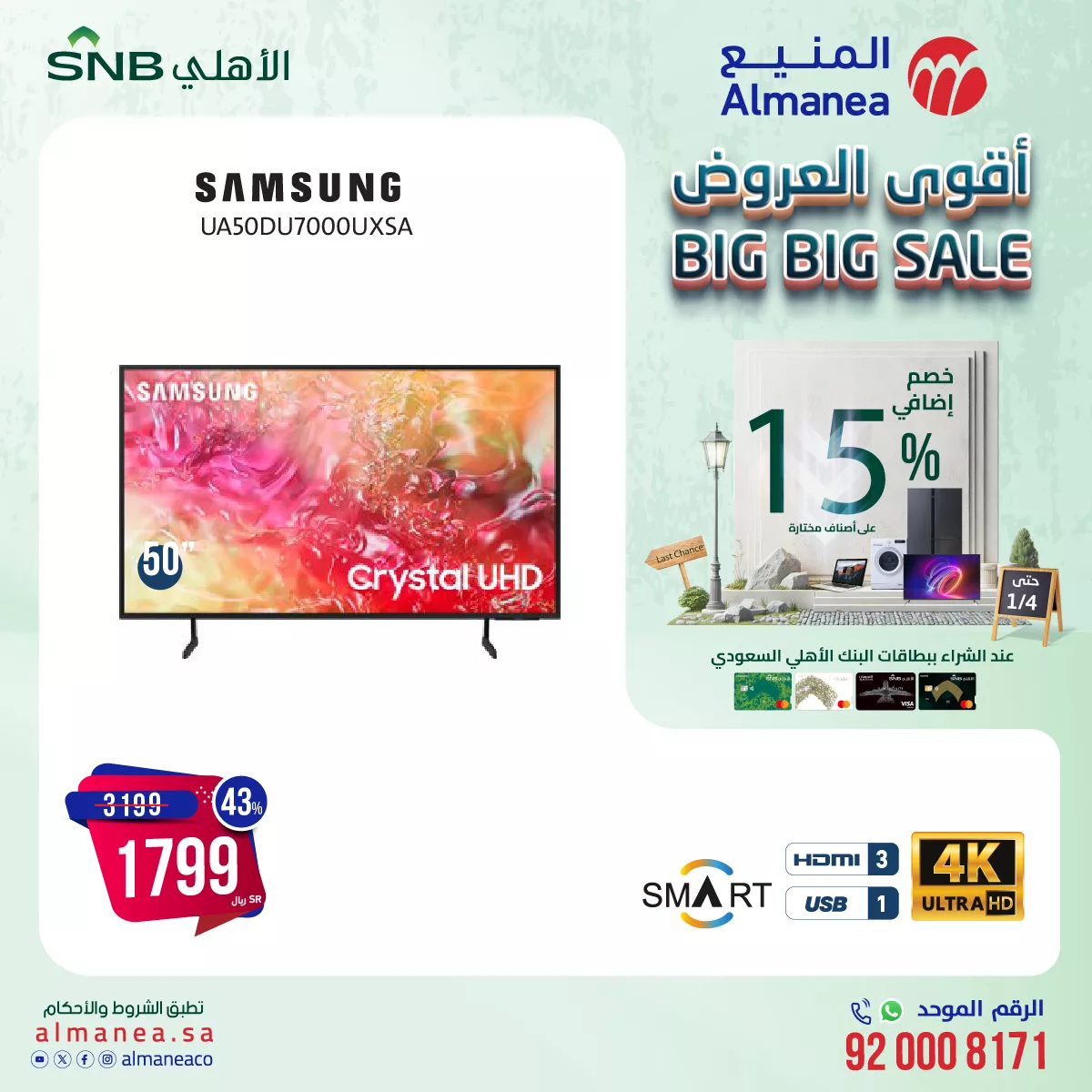 - تلفزيون سامسونج 50 بوصة: 1799 ريال سعودي بعد الخصم