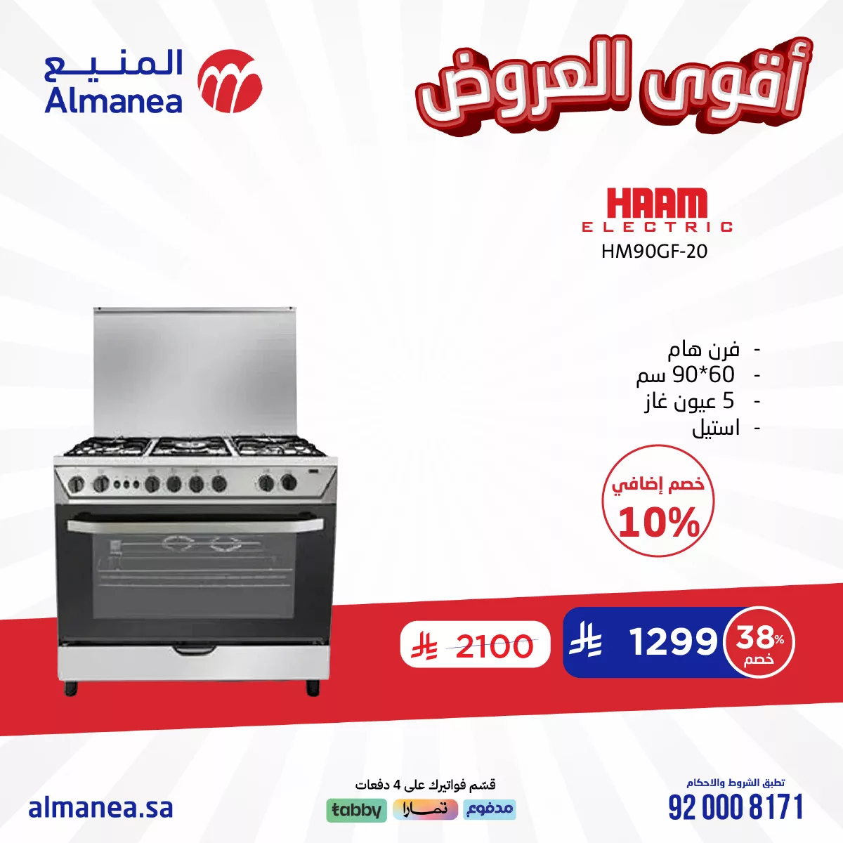 عروض المنيع تقدم لك أفضل الخصومات على المكيفات لتستمتع بأجواء مريحة خلال الصيف مع مكيفات هام و اكسبر وتيرم بتقنيات تبريد متطورة كما يمكنك تحديث مطبخك مع الأفران والأسطح الكهربائية بتصميمات عصرية وجودة عالية لا تفوت العروض الحصرية واحصل على منتجاتك المفضلة بأفضل الأسعار