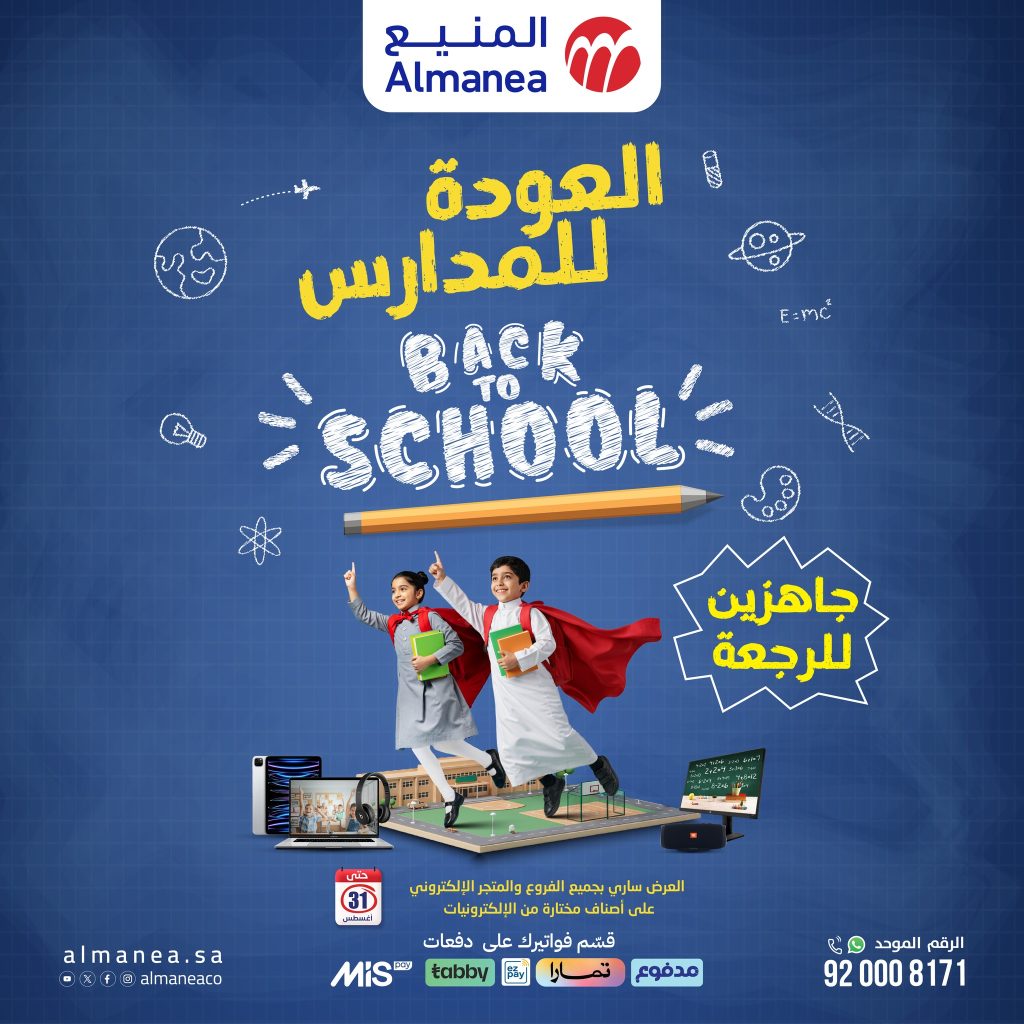 عروض المنيع حتي الاحد 31-8-2025 تقدم تشكيلة واسعة من الأجهزة الذكية مع بداية موسم العودة للمدارس حيث تشمل أجهزة التابلت من ماركات عالمية مثل سامسونج وهونر بالإضافة إلى أحدث إصدارات الهواتف الذكية مثل آيفون 16 برو و تمتد لتشمل شاشات الألعاب المميزة من إل جي بالإضافة إلى ملحقات الكمبيوتر وكذلك سماعات الرأس