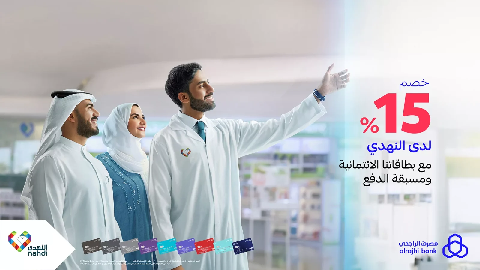 عروض النهدي التي تعود من جديد بتعاون مثمر مع مصرف الراجحي لتقديم عرض خصم يصل إلى 15% عند الدفع بواسطة البطاقات الائتمانية أو البطاقات مسبقة الدفع الصادرة من الراجحي