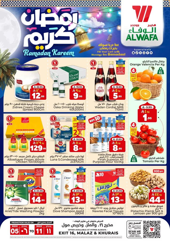 تحتوي عروض الوفاء هايبر ماركت علي :