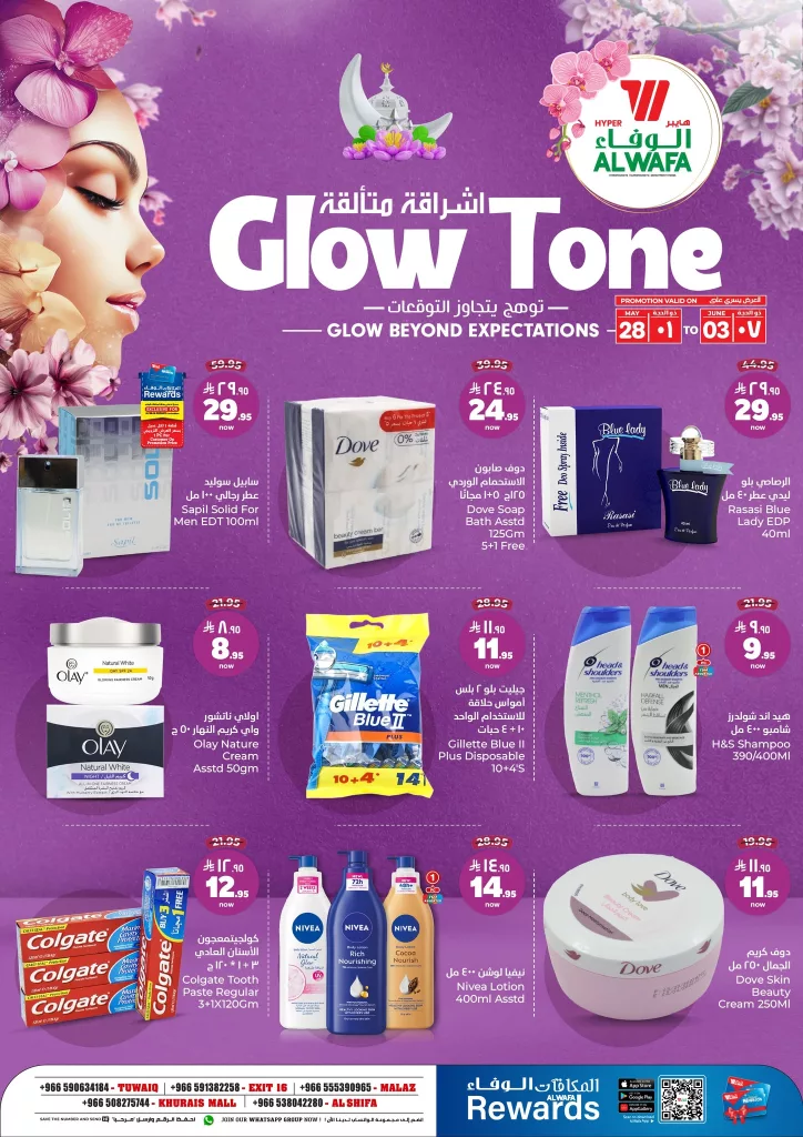 عروض الوفاء هايبر ماركت الاسبوعية تشمل أيضا مستحضرات مخصصة للعناية بالبشرة والوجه مثل غسولات الوجه من غارنييه وهيمالايا وأقنعة التنظيف العميق بالإضافة إلى لوشنات الجسم الفاخرة وكريمات التفتيح والتنعيم مما يجعل تجربة التسوق متكاملة لمن يبحث عن الجودة والتوفير معا