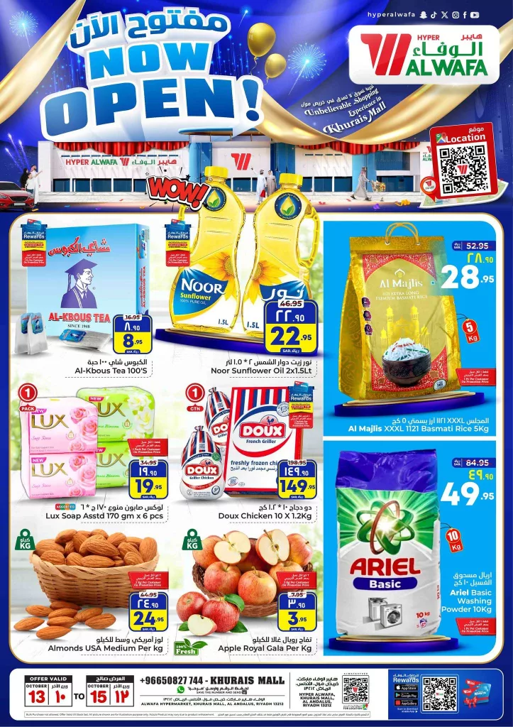عروض الوفاء هايبر ماركت الاحد 13-10-2024 تقدم تخفيضات مذهلة في مجموعة واسعة من المنتجات الأساسية. تشمل العروض زيوت الطهي الشهيرة مثل زيت دوار الشمس نور بعبوة مزدوجة بالإضافة إلى أرز المجلس البسمتي الفاخر بوزن 5 كجم مع تخفيضات ملحوظة على أسعار الشاي ومنتجات العناية الشخصية .