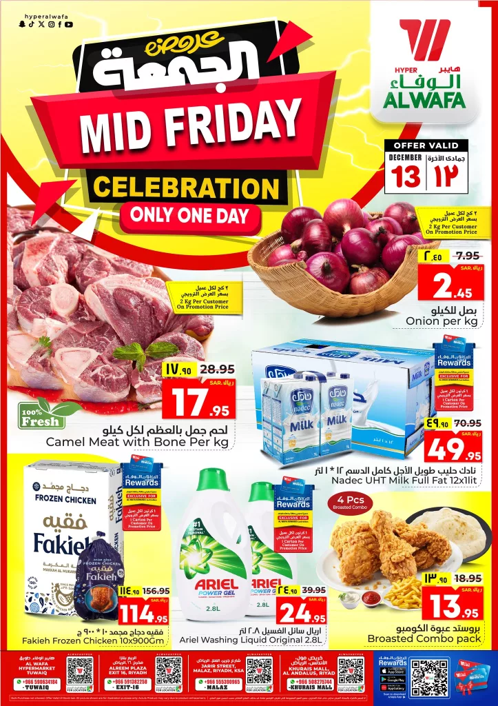 عروض الوفاء هايبر ماركت الجمعة 13 ديسمبر 2024 هي واحدة من أبرز التخفيضات الحصرية التي تقدم مجموعة متنوعة من المنتجات بأسعار تنافسية للغاية تلبي احتياجات جميع العملاء و تشمل هذه العروض خيارات متنوعة من المنتجات الطازجة مثل اللحوم والخضروات بالإضافة إلى منتجات الألبان المجمدة