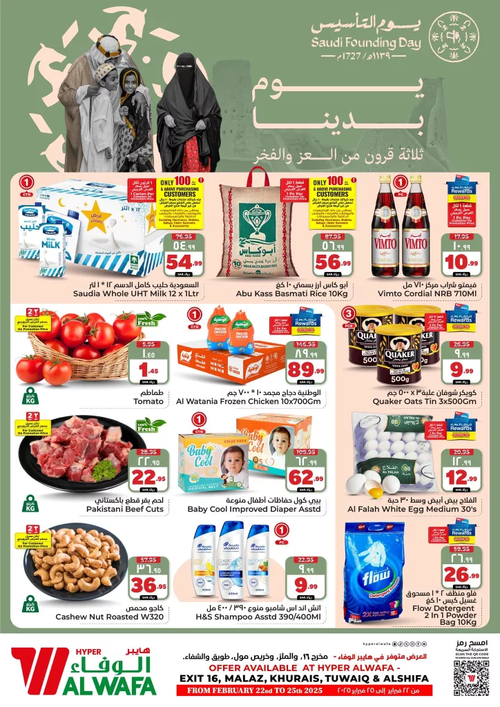عروض الوفاء هايبر ماركت صفحة واحدة – عروض يوم التاسيس السبت 23 شعبان 1446هـ