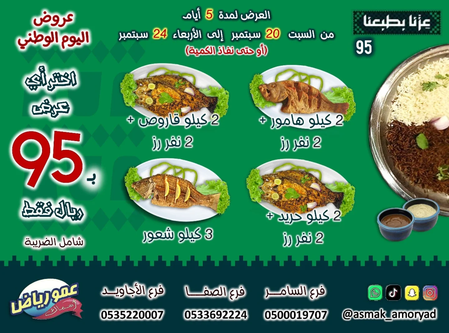 - 4️⃣ 2 كيلو هامور مقلي او مشوي مع 2 نفر رز صياديه او ابيض