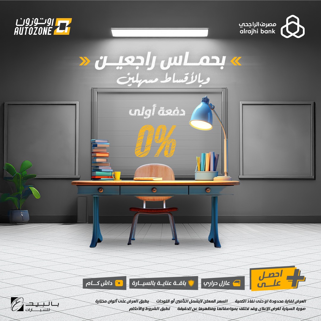عروض أوتوزون بالبيد للسيارات بمناسبة العودة للمدارس تقدم لك فرصة ذهبية علي أحدث الموديلات من تشكيلة واسعة تشمل سيارات الدفع الرباعي والسيدان والبيك أب مع مميزات إضافية مجانية مثل العازل الحراري وباقة العناية بالسيارة وضمان ممتد أو الباقة الذهبية كل ذلك مع إمكانية التقسيط الميسر ودفعة أولى 0%