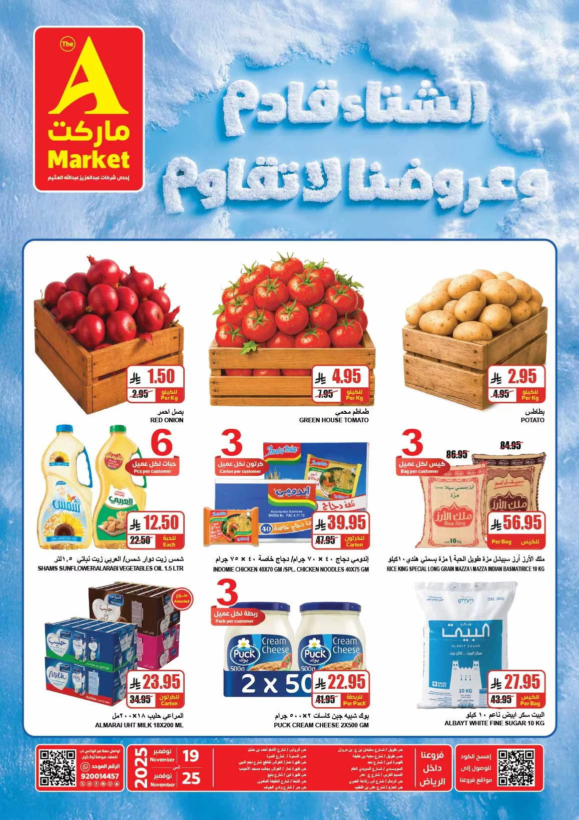 نقدم لكم اليوم احدث عروض ايه ماركت الرياض الاربعاء 28 جماد الاول 1447هـ و تحتوي علي مجموعة متنوعة من الأجبان والكريمة وحليب الأطفال والمشروبات بالإضافة إلى الزبدة ومنتجات الحليب الطازج و بتوفر كمان صلصة الطماطم والمايونيز والفطر المعلب والتونة وشرائح الزيتون ولحوم اللانشون الجاهزة و باقل الاسعار .