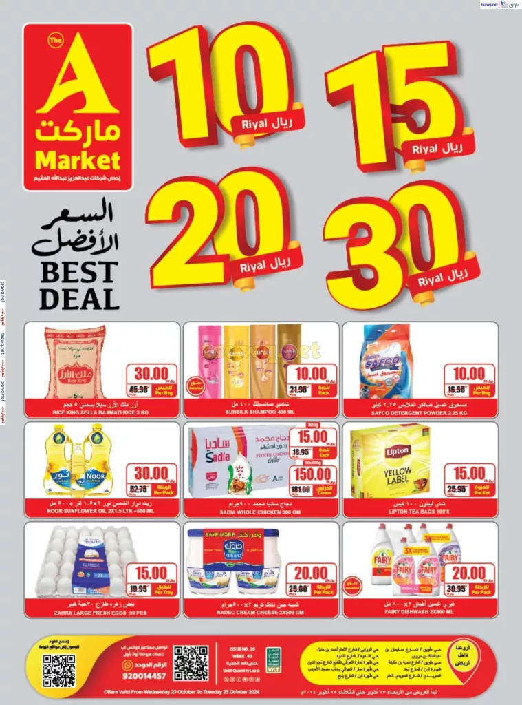 عروض ايه ماركت الرياض السبت 26 أكتوبر 2024 توفر تشكيلة واسعة من المنتجات الأساسية بأسعار تنافسية تناسب كافة الميزانيات من منتجات الأرز والزيوت إلى منتجات العناية الشخصية و يأتي العرض ليلبي احتياجات المنزل اليومية بأسعار تبدأ من 10 ريال فقط تابعونا علي موقعكم عروض توداي .