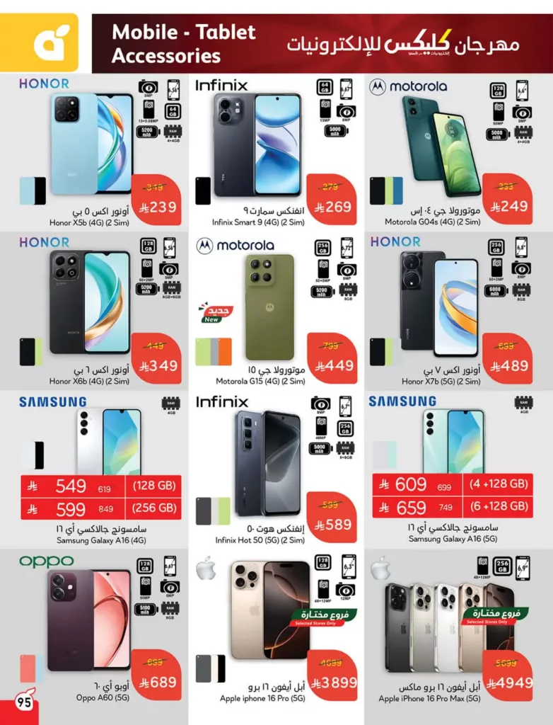 عروض بنده تشمل أيضًا أحدث إصدارات آيفون لمحبي هواتف آبل حيث تتوفر أجهزة iPhone 16 Pro وiPhone 16 Pro Max بمواصفات متقدمة مثل كاميرات بدقة 48 ميجابكسل وشاشات OLED عالية الدقة ودعم شبكات الجيل الخامس كما تشمل العروض خيارات متعددة من سامسونج بمساحات تخزين مختلفة ورامات مناسبة للألعاب