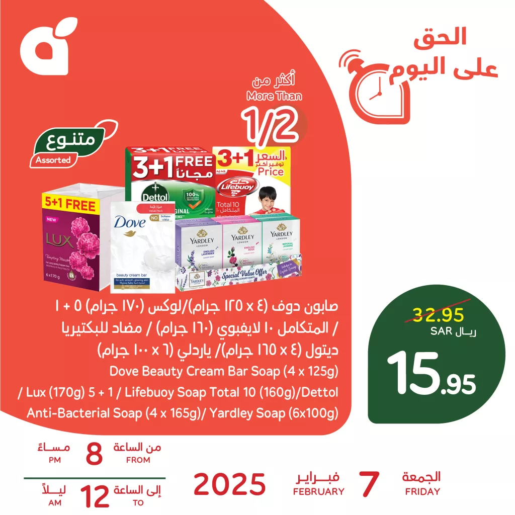 تقدم هايبر بنده عروضًا يومية مميزة على المنتجات الأساسية، وخاصة خلال فترة العروض الرمضانية، حيث يمكنكم الاستفادة من تخفيضات كبيرة على مجموعة متنوعة من المنتجات. واليوم، يأتيكم عرض خاص على مجموعة من أفضل أنواع الصابون بخصم يتجاوز 50%، مما يمنحكم فرصة رائعة للتوفير على منتجات النظافة الشخصية الأساسية.