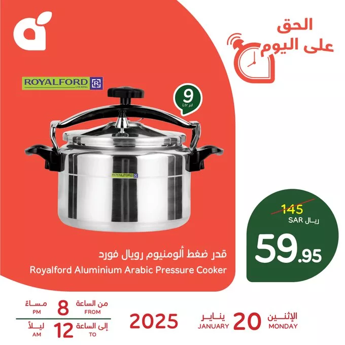 عروض بنده الرمضانية اليومية علي قدر ضغط ألمنيوم رويال فورد الاثنين 20-1-2025 ساعات محدودة