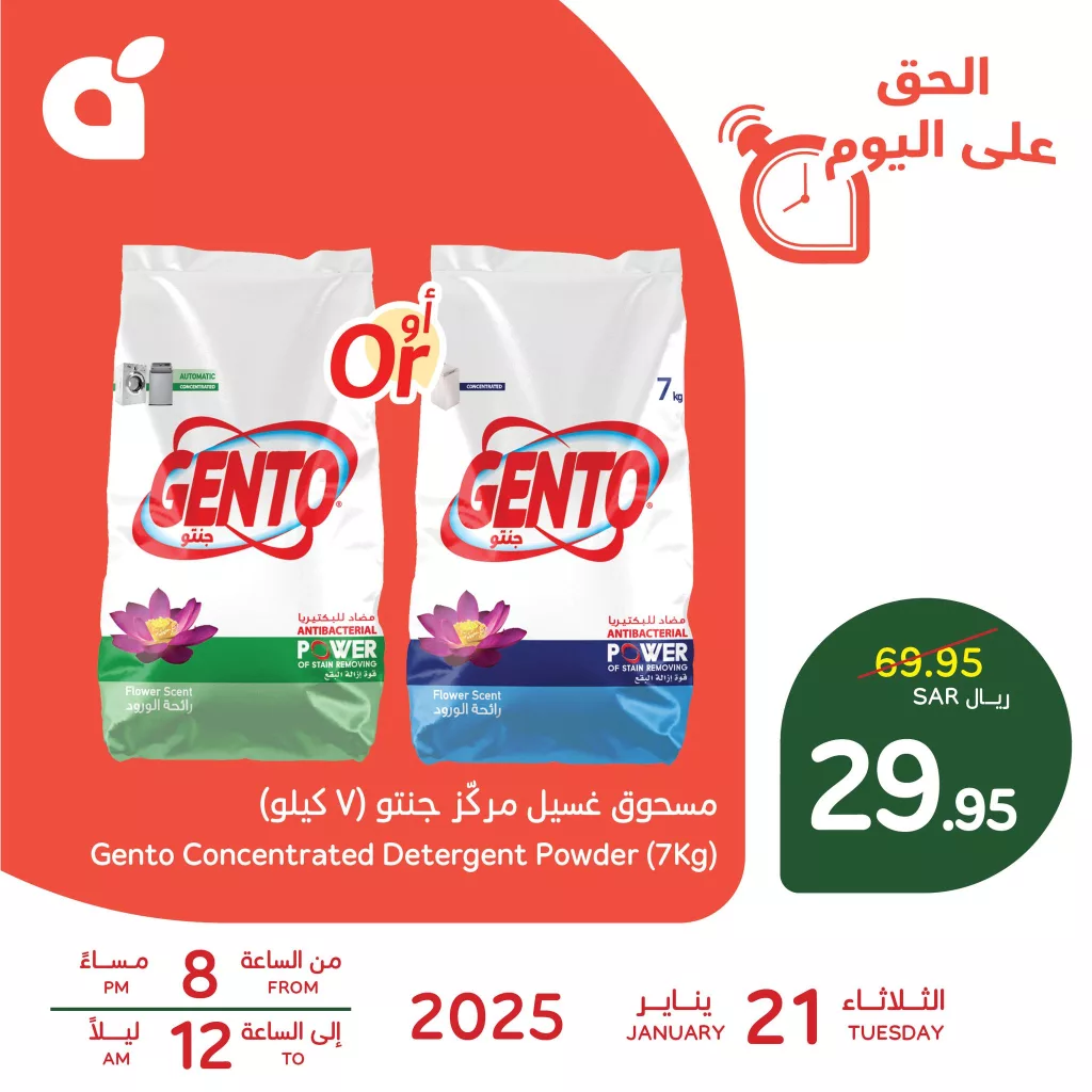 عروض بنده يوم الثلاثاء 21 يناير 2025 تقدم لكم تخفيضا لا يفوت على مسحوق الغسيل جنتو (7 كيلو) بجودة عالية وسعر لا يصدق الآن يمكنكم اختيار مسحوق الغسيل المفضل لديكم سواء برائحة الزهور أو الخاص بالقضاء على البكتيريا،وبسعر مخفض و هذا العرض يضمن لكم نظافة مثالية وفعالية عالية بميزانية اقتصادية.