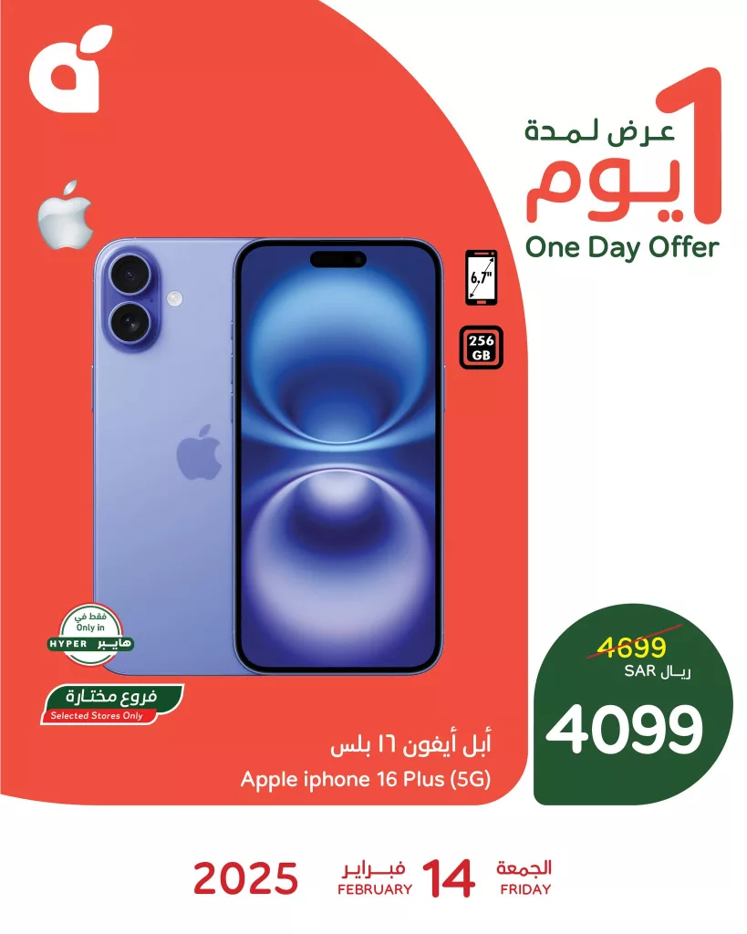 - آبل آيفون 16 بلس (5G) – سعة 256 جيجابايت