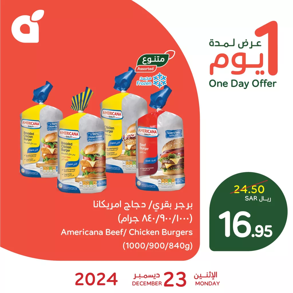- برجر دجاج أمريكانا (840 جرام): 16.95 ريال سعودي