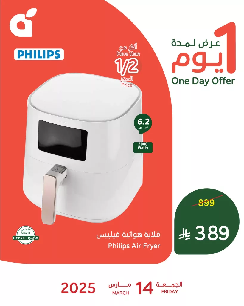 عروض بنده الجمعة 14 مارس 2025 توفر فرصة رائعة لمحبي الأجهزة المطبخية الذكية حيث تشمل القلايات الهوائية التي تساعد على طهي الطعام بطريقة صحية وبأقل كمية من الزيت و هذه القلاية من فيليبس تعتبر خيارا مثاليا للعائلات حيث تجمع بين التصميم العصري والأداء القوي،