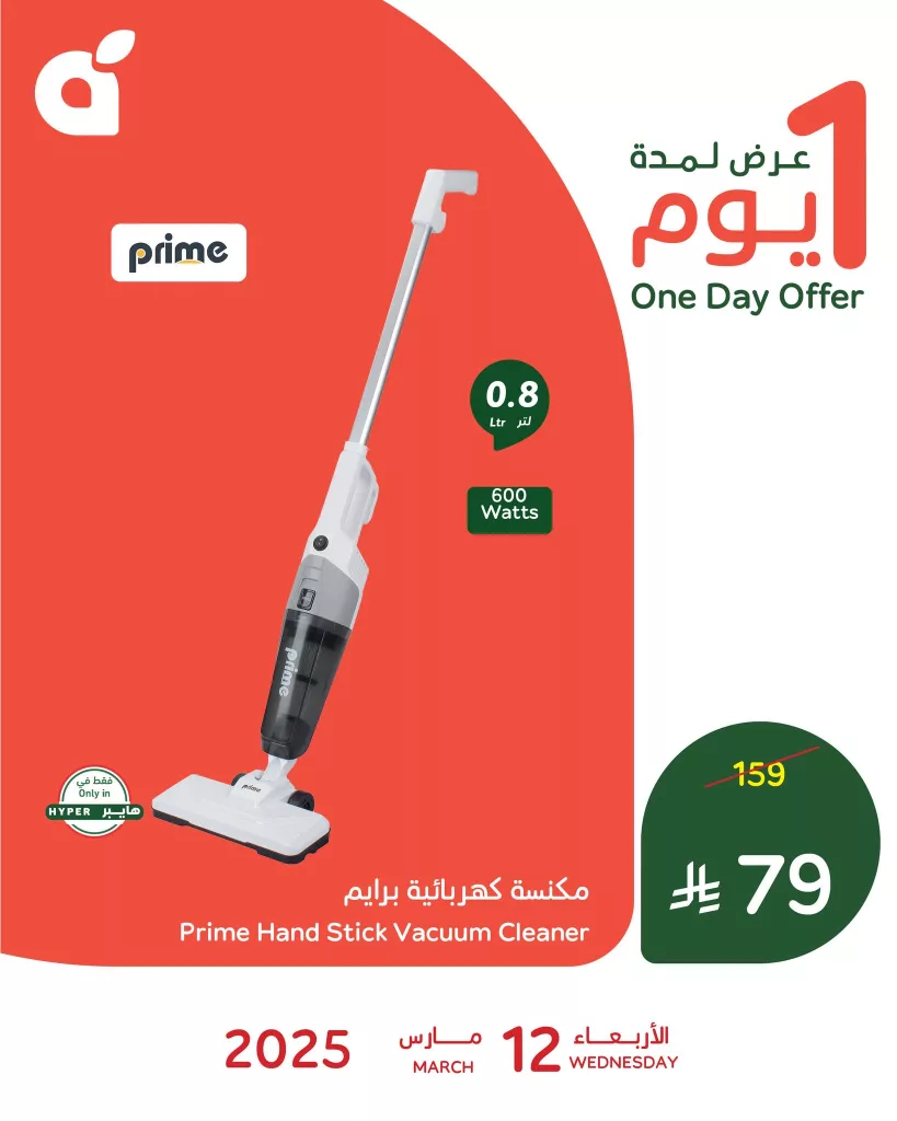 تجد في عروض بنده تخفيضات مذهلة على الأدوات الكهربائية التي تساعد في إنجاز المهام المنزلية بكفاءة عالية مثل المكنسة الكهربائية من برايم التي تتميز بسعة 0.8 لتر وقدرة 600 واط والتي أصبحت متاحة بسعر مخفض يجعلها خيارا مثاليا لكل منزل و يمكن الاستفادة من هذه العروض الحصرية لفترة محدودة داخل فروع هايبر بنده فقط.
