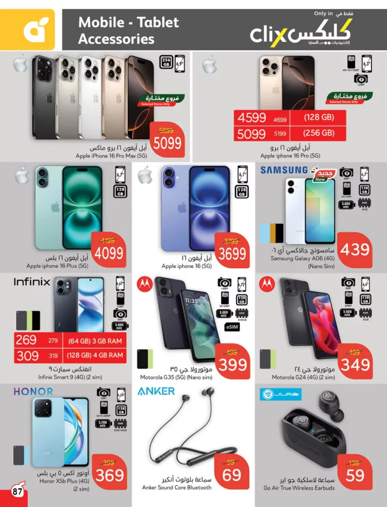 - أبل آيفون 16 بلس (5G) – 128 جيجا بايت: 4099 ريال