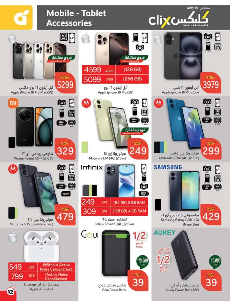 عروض بنده لا تقتصر فقط على الهواتف بل تمتد أيضا إلى الإكسسوارات المميزة مثل سماعات آبل AirPods 4 وشواحن متنقلة من Goui وAukey مما يساعدك على البقاء متصلا طوال اليوم سواء كنت تبحث عن هاتف جديد أو إكسسوارات بأسعار معقولة ستجد في عروض بنده كل ما تحتاجه بأفضل قيمة مقابل المال.