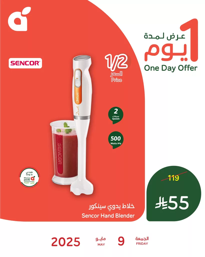تقدم عروض بنده ليوم واحد فقط الجمعة 9 مايو 2025 حيث تشمل التخفيضات منتجات منزلية وعلامات تجارية موثوقة مثل خلاط سينكور اليدوي بقدرة عالية وتصميم عملي وتمثل هذه العروض فرصة رائعة للتسوق الذكي من خلال تخفيضات فعلية على الأجهزة الصغيرة التي يحتاجها كل منزل