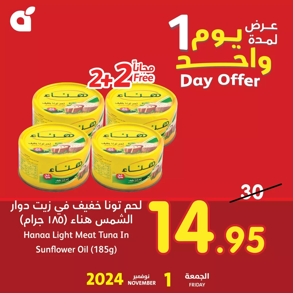- لحم تونا خفيف في زيت دوار الشمس من هناء (185 جرام) : 14.95 ريال سعودي (عرض 2+2 مجانًا)