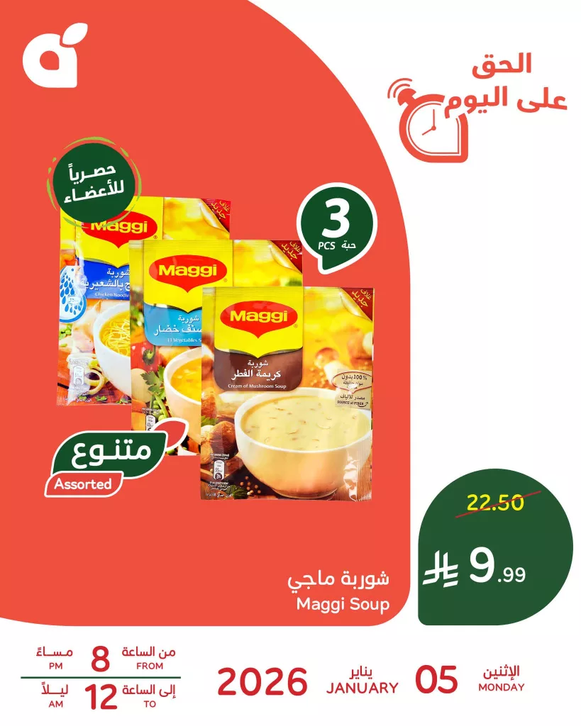 تحتوي عروض بنده علي : 3 حبات من شوربة ماجي بـ 10 ريال سعودي