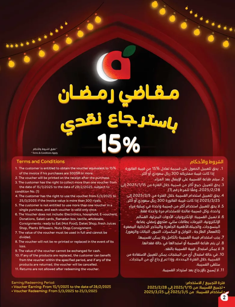 - يحق للعميل تجميع أكثر من قسيمة خلال الفترة من 15/1/2025 إلى 28/2/2025، وذلك وفقًا للشرط رقم (1)