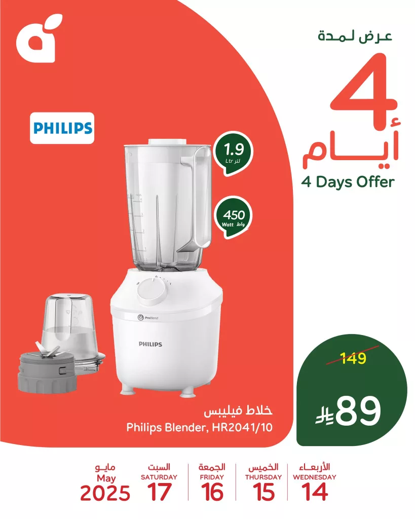- خلاط فيليبس (1.9 لتر – 450 واط) موديل HR2041/10 – 89 ريال بدلًا من 149 ريال