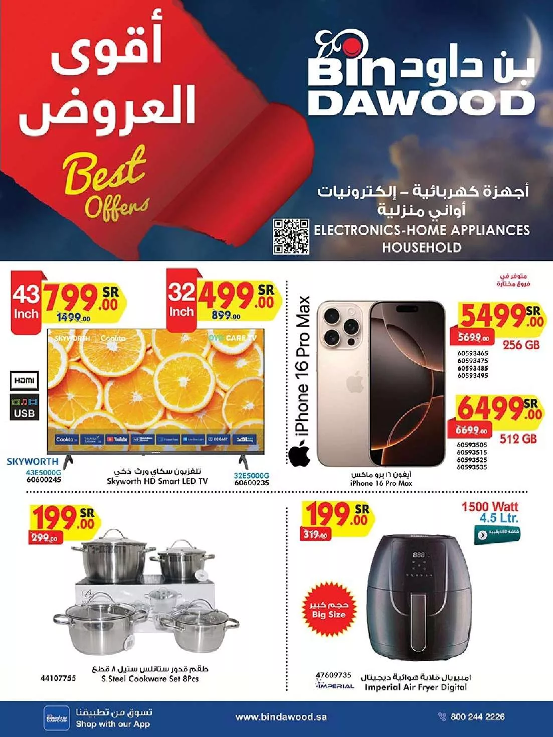 تقدم عروض بن داود لهذا الأسبوع مجموعة مذهلة من التخفيضات على أحدث الأجهزة الإلكترونية والمطبخية بالإضافة إلى عروض رائعة على أدوات العناية الشخصية وأدوات المنزل و تشمل العروض أسعارًا مخفضة على التلفزيونات الذكية الأجهزة المنزلية مثل القلايات الهوائية وطناجر الضغط وأجهزة حلاقة الشعر بأسعار تنافسية