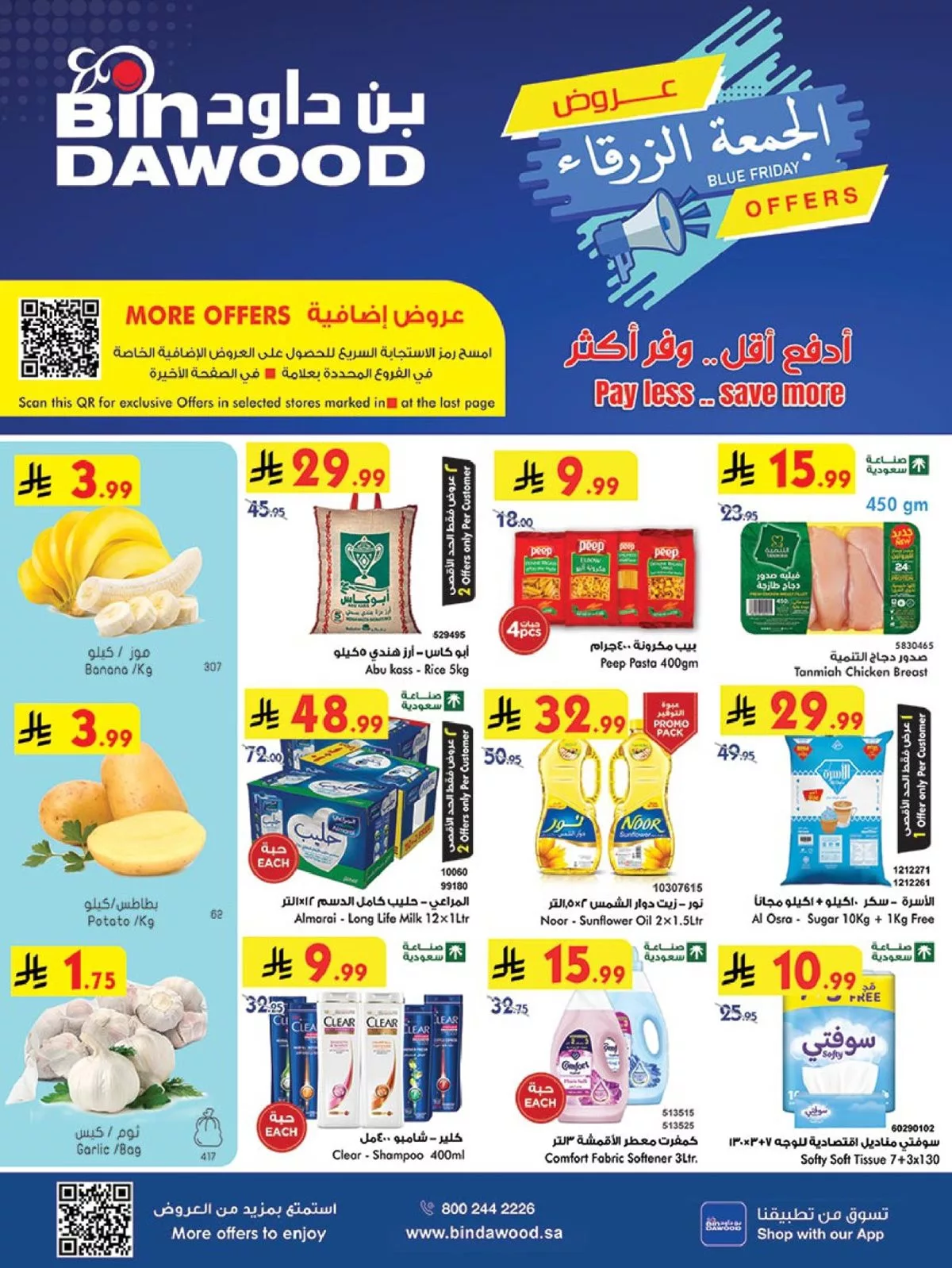 عروض بن داود المدينة المنورة الخميس 29 جمادى الأولى 1447هـ تبدأ بالأجهزة المنزلية التي تضم أفران كهربائية ومحضرات شوربة ومقالي غير لاصقة وغلايات وخلاطات ثم تقدم السلع الغذائية التي تشمل البصل والكوسا والبطاطس والفلفل والتفاح الأمريكي والعنب وغيرها من اللحوم و مستلزمات المنزل و باقل الاسعار