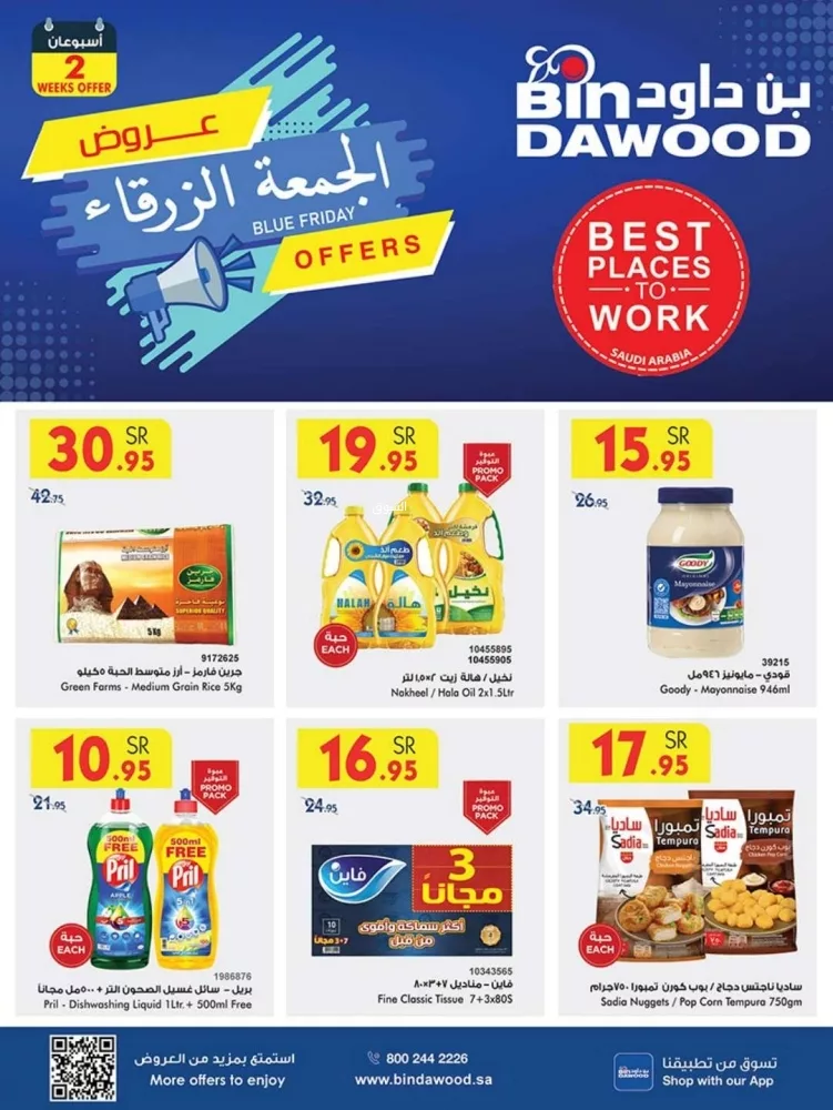 عروض الجمعة البيضاء في بن داود جدة الاربعاء 20 نوفمبر 2024 تقدم تخفيضات حصرية على تشكيلة واسعة من المنتجات. تشمل العروض خصومات مميزة على اللحوم الحمراء الطازجة والدواجن إلى جانب الأسماك البحرية عالية الجودة كما توفر عروضا رائعة على الأرز البسمتي الفاخر والبقوليات التي تناسب جميع الأذواق.