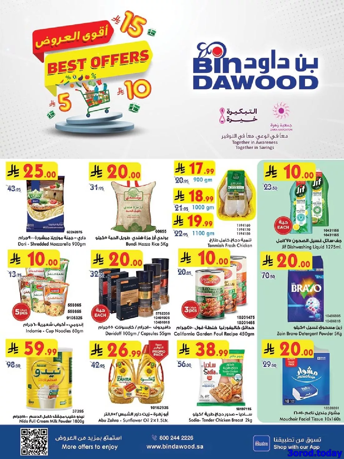 عروض بن داود خميس مشيط الأسبوعية الأربعاء 23 ربيع الآخر 1447هـ تقدم عروضًا كبيرة على المنتجات الغذائية من المخبوزات والمعجنات الشرقية والمكسرات والعسل والعصائر الطبيعية والمشروبات الغازية والشوكولاتة كما تضم خصومات على أجهزة القهوة وأفران الطهي الصغيرة وأجهزة التحضير وأدوات تحضير الطعام الجميلة