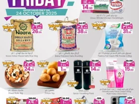 عروض بيناس هايبر ماركت الرياض تشمل أيضا لحوم طازجة مثل أضلاع البقر والدجاج إلى جانب فواكه موسمية كالبطيخ والمانجو المجفف كما يتضمن العرض مجموعة كبيرة من المنتجات المعلبة والوجبات السريعة مثل النودلز والوايفر والكوكيز والشوكولاتة المتنوعة تميز العرض أيضا بتوفير مشروبات طبيعية ومكملات القهوة