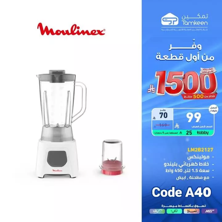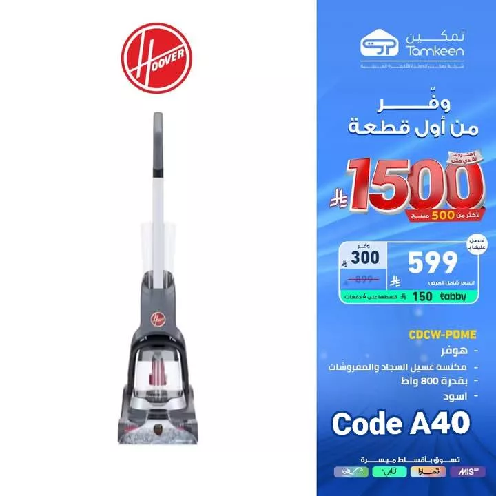عروض تمكين السعودية لا تقتصر على الإلكترونيات بل تمتد إلى أدوات المطبخ والمفروشات مثل الخلاطات متعددة الاستخدام من مولينكس والمكانس الكهربائية من هوفر التي توفر أداء فعالًا في التنظيف كما تضم غسالات الصحون المتطورة من توشيبا والتي تدعم برامج متعددة