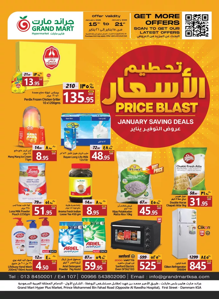 تمتد التخفيضات إلى قسم الأدوات المنزلية حيث تجد خصومات على الأجهزة الصغيرة مثل أفران الميكروويف و المكانس الكهربائية ومكواة البخار. كما تقدم العروض أسعارا مذهلة على الالكترونيات التي تناسب جميع أفراد الأسرة جراند مارت الدمام هو المكان المثالي لتلبية احتياجاتك اليومية بأسعار تنافسية.