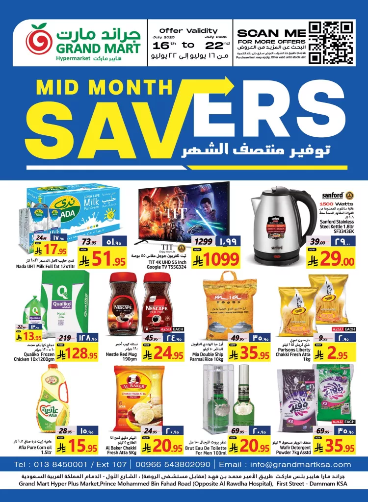 عروض جراند مارت الدمام كذلك تشمل خصومات مميزة على الأجهزة المنزلية الذكية التي تضم آلات إعداد القهوة بالكبسولات وآلات تحضير الشوربة بالبخار ومراوح الطاولة بتقنية التبريد السريع بالإضافة إلى المكانس اللاسلكية متعددة الاستخدام وأجهزة تسخين الطعام المحمولة