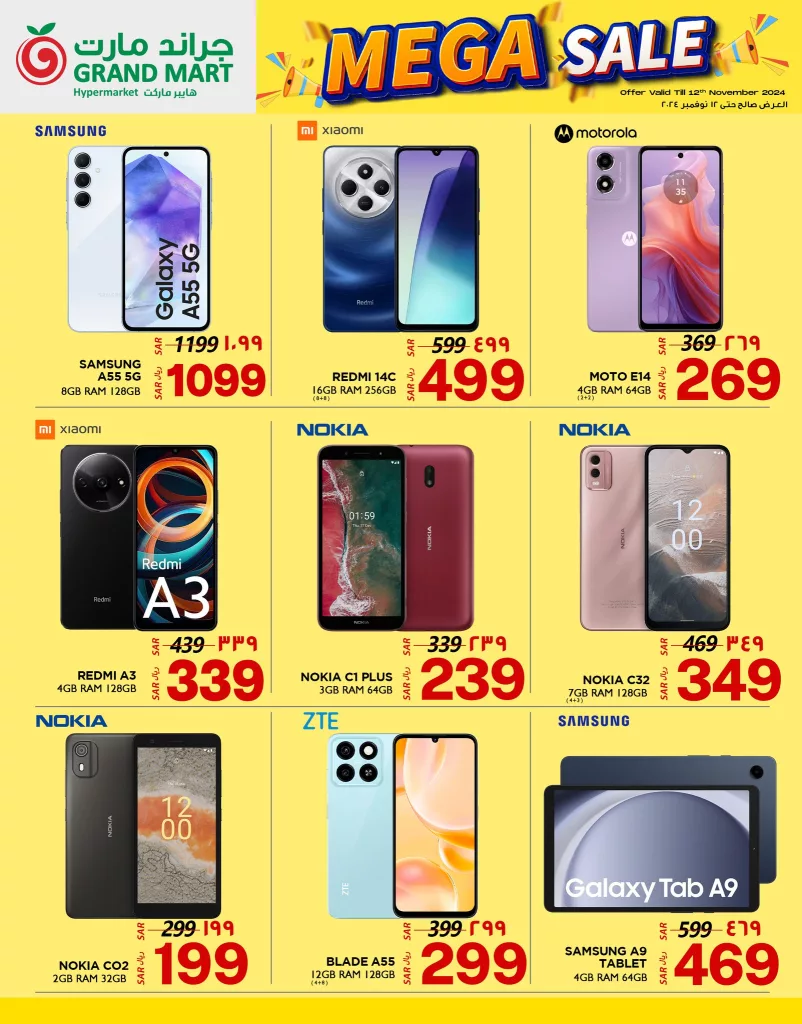 تقدم عروض جراند مارت الدمام الخميس 8-11-2024 خصومات مميزة على تشكيلة واسعة من الهواتف الذكية والإلكترونيات و تشمل أبرز العلامات التجارية مثل سامسونج شاومي ونوكيا و يمكنك الحصول على أحدث الهواتف بمواصفات عالية وأسعار مخفضة مما يوفر لك تجربة شراء استثنائية تناسب جميع الميزانيات