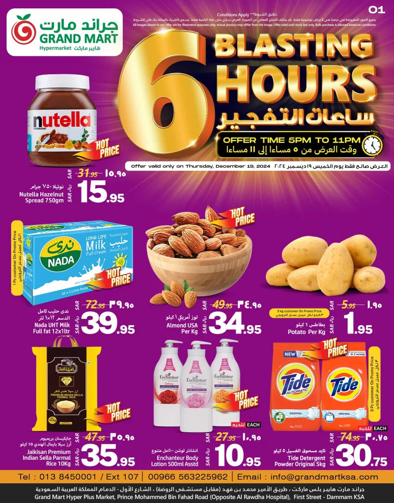 عروض جراند مارت الدمام الخميس 19 ديسمبر 2024 تقدم تخفيضات رائعة على اللحوم الطازجة مثل لحم العجل والدواجن بالإضافة إلى الأسماك الطازجة مثل الروبيان والتونة كما تشمل العروض الفواكه الطازجة مثل العنب الأحمر و البرتقال والموز والخضروات مثل البطاطس و الطماطم والباذنجان و السلع الأساسية