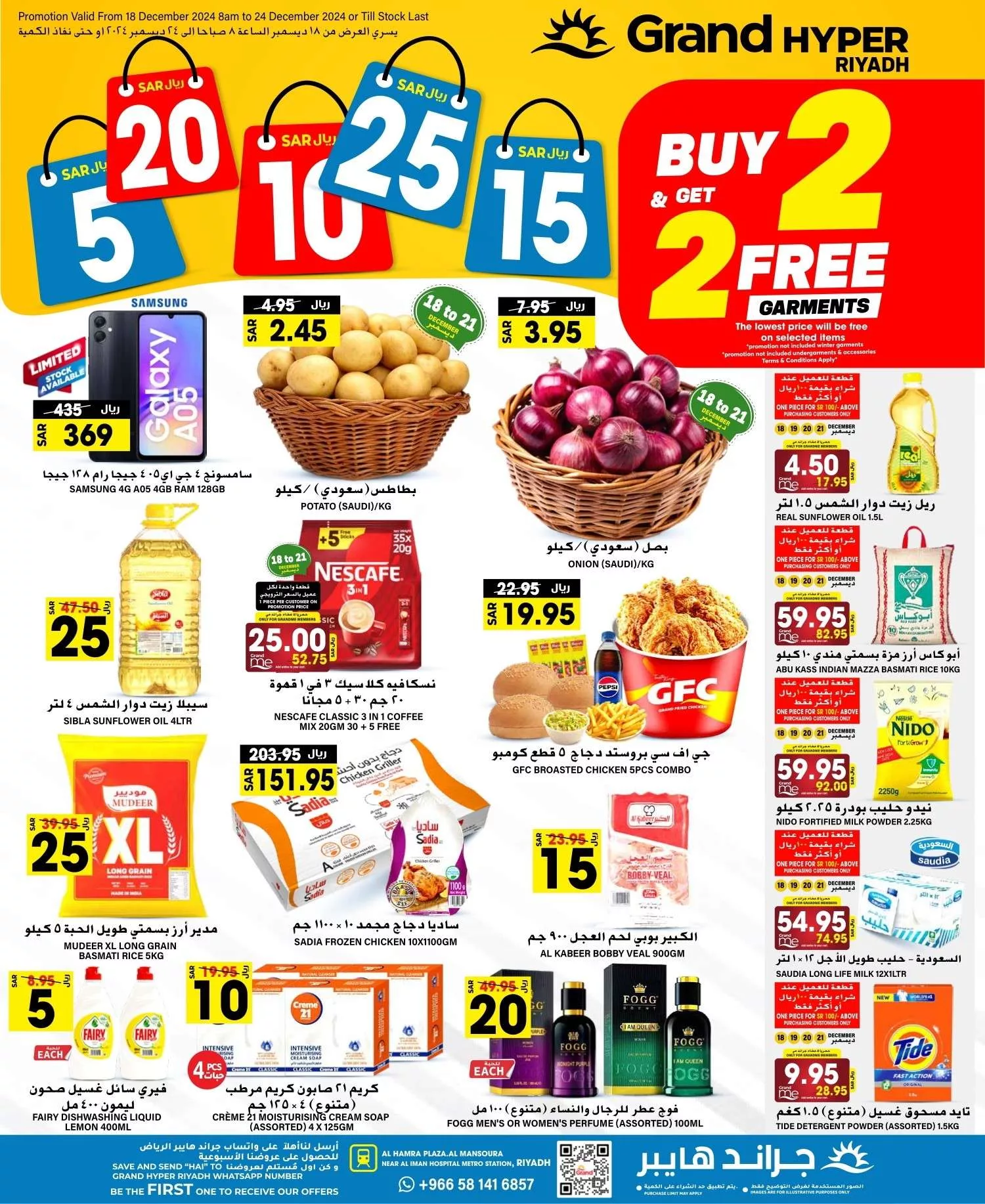 عروض جراند هايبر الرياض الخميس 19 ديسمبر 2024 تشمل خصومات مميزة على اللحوم الطازجة والدواجن بجانب الأسماك الطازجة مثل الفيليه والكاليماري كما تتوفر عروض على الفواكه الطازجة والخضروات و لمحبي المخبوزات هناك عروض على الكروسان والخبز الفرنسي بجانب السلع الأساسية