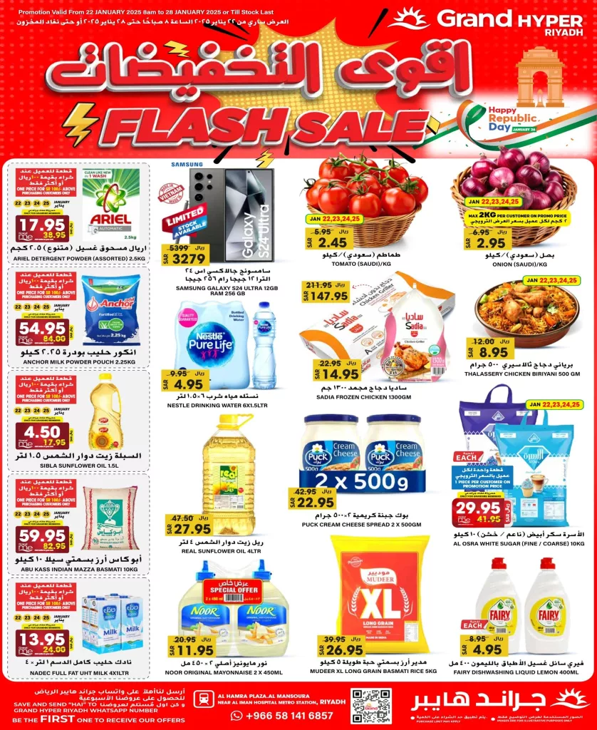 عروض جراند هايبر الرياض حتي الثلاثاء 28 يناير 2025 تقدم لك تخفيضات هائلة على المنتجات الطازجة تشمل العروض خصومات على اللحوم الطازجة الدواجن المجمدة والمأكولات البحرية بالإضافة إلى الفواكه الطازجة والخضروات العضوية التي تمنحك خيارات غذائية متنوعة