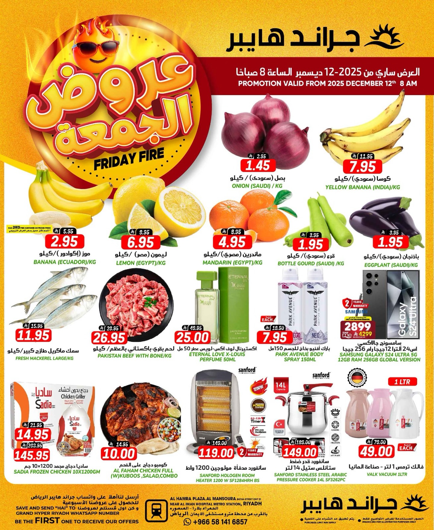 نقدم لكم اليوم احدث عروض جراند هايبر الرياض الجمعة 12-12-2025 و تشمل الخضروات والفواكه الطازجة كما يضم تشكيلة من اللحوم والدواجن والأسماك والمنتجات المجمدة و كذلك مجموعة من المنتجات الاستهلاكية والأجهزة المنزلية الخفيفة ومنتجات العناية الشخصية وباقل الاسعار المناسبة للجميع .