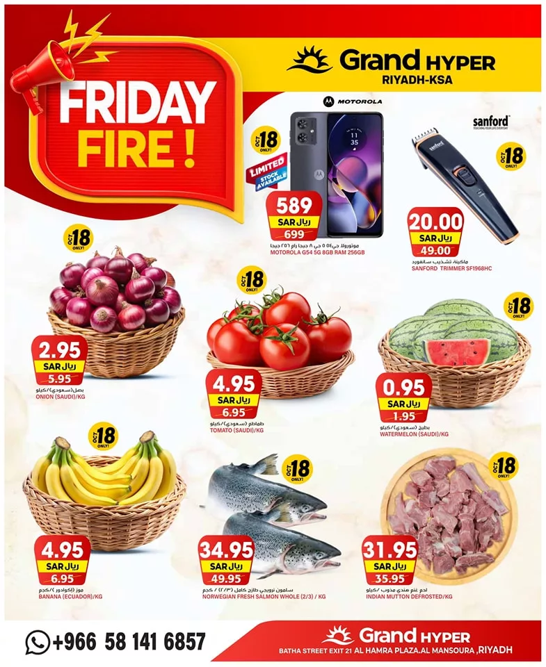 عروض جراند هايبر الرياض الويكند يوم الجمعة 18 أكتوبر 2024 تتضمن خصومات كبيرة على مجموعة واسعة من المنتجات الغذائية والمشروبات. يمكنك الاستفادة من العروض على المأكولات المجمدة مثل البيتزا والبرجر الجاهز، بالإضافة إلى العصائر الطبيعية والمشروبات الغازية التي تناسب جميع أفراد الأسرة.
