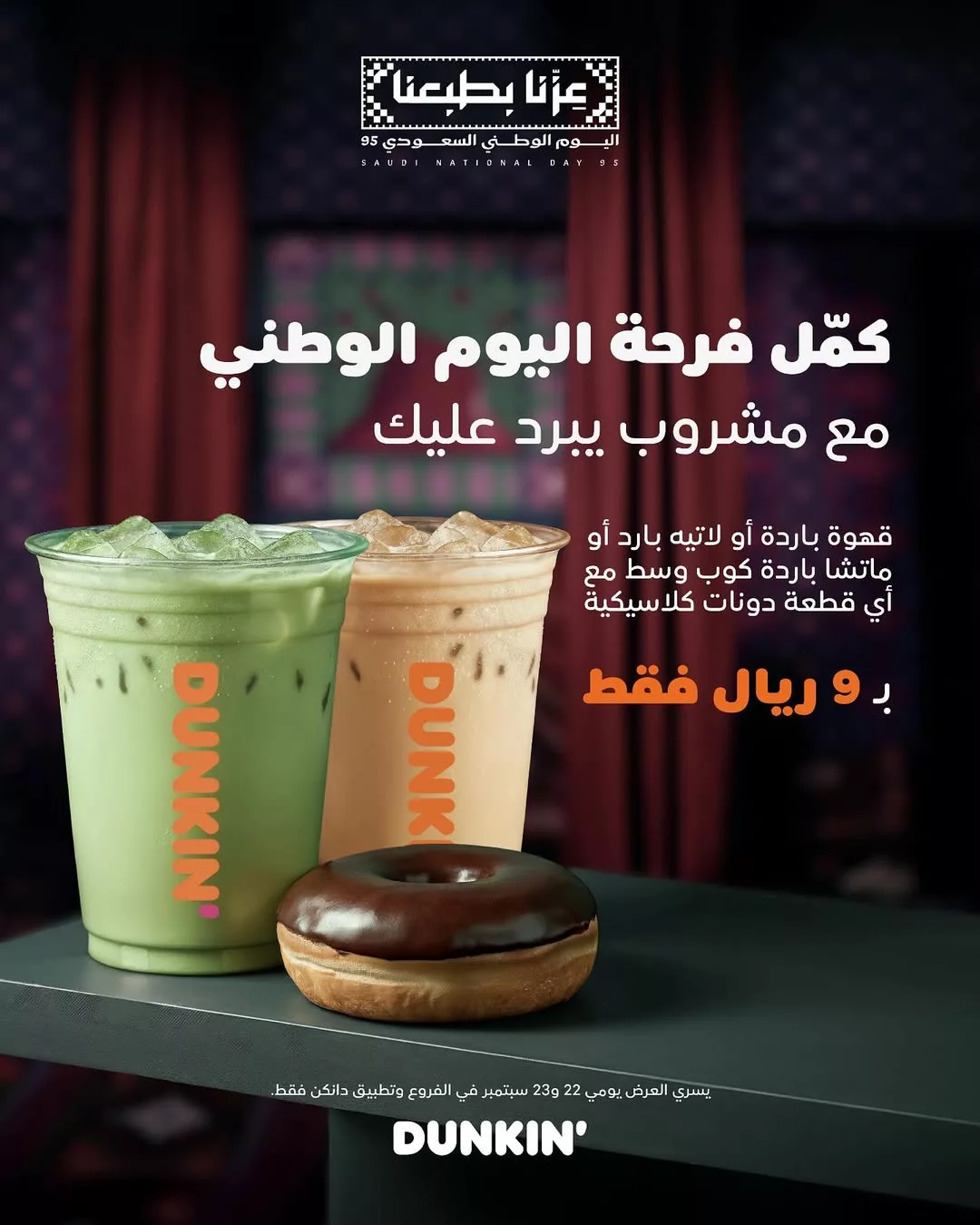 عروض دانكن السعودية احتفالا في اليوم الوطني السعودي 95 مشروبك مع دونات بسعر ولا اروع