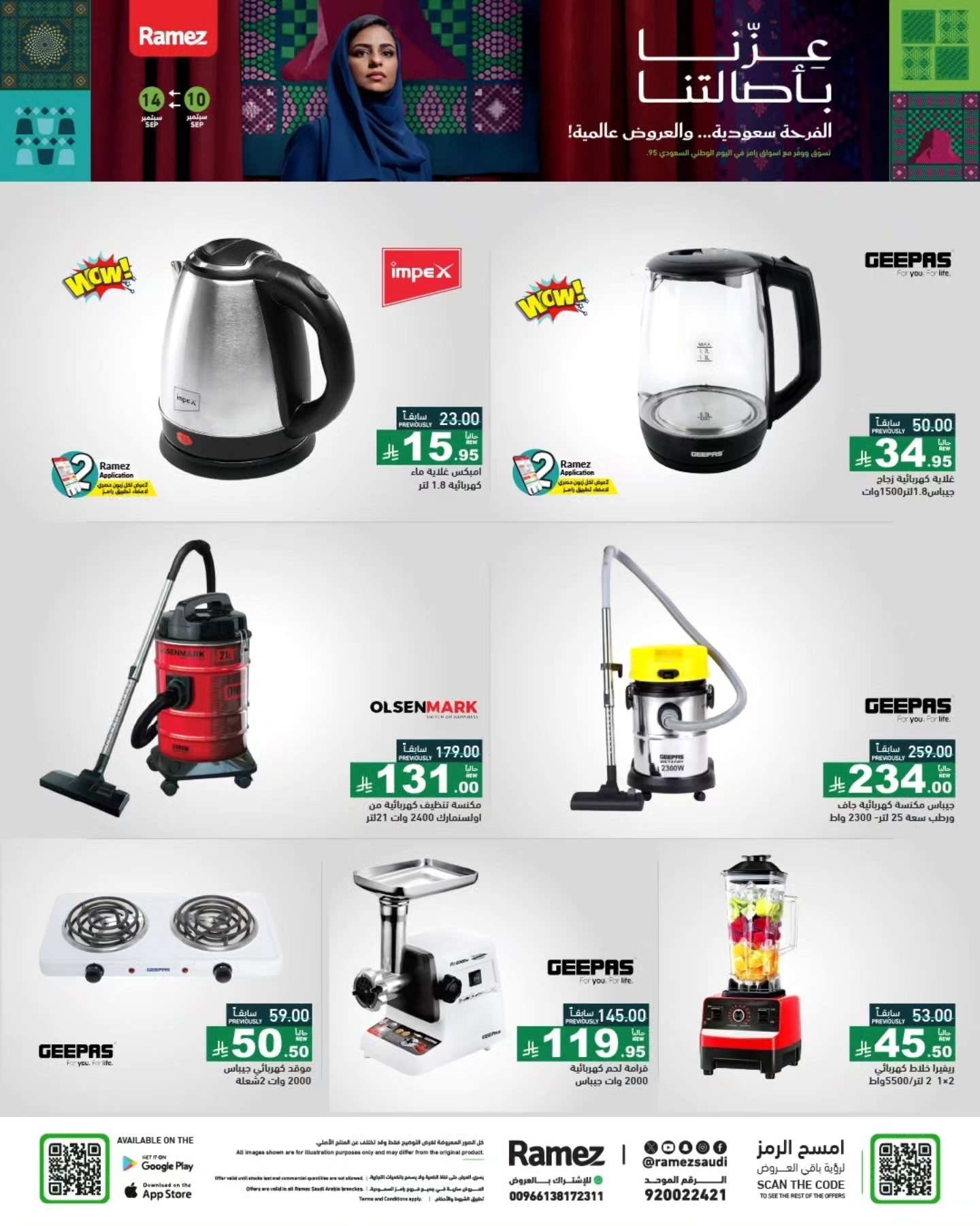 عروض رامز السعودية لليوم الوطني السعودي 95 هذا العرض موجه الى عشاق العروض الكهربائية مع تخفيضات رامز الخاصة على الأجهزة المنزلية والكهربائية حيث تجتمع الجودة مع السعر المناسب لا تفوتوا عروض التوفير في اسواق رامز السعودية