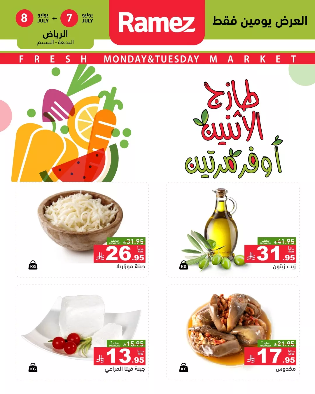 تُعد عروض الخضار والفواكه والمنتجات الطازجة من أكثر العروض التي ينتظرها المتسوقون في السعودية، حيث يبحث الجميع عن الجودة العالية والأسعار المخفضة. في هذا الإطار، تقدم رامز السعودية عرضًا مميزًا تحت عنوان طازج الإثنين أوفر مرتين ليومي الإثنين والثلاثاء الموافق 7 و8 يوليو في فرعي تبوك والأحساء، مع تخفيضات قوية على مجموعة من المنتجات الغذائية الطازجة