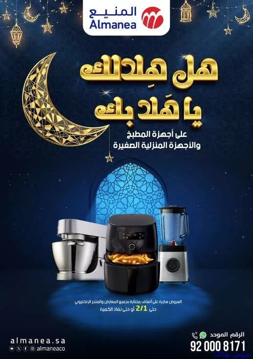مع اقتراب عروض شهر رمضان المبارك، تزداد الحاجة إلى تجهيزات المطبخ بأفضل الأجهزة التي تسهّل تحضير الوجبات وتوفر الوقت والجهد. ومن هذا المنطلق، تقدم عروض شركة المنيع عروضًا مميزة على أجهزة المطبخ والأجهزة المنزلية الصغيرة، وذلك لمساعدتكم في تجهيز مطابخكم بأفضل الأسعار والعروض التنافسية. تشمل العروض مجموعة واسعة من المنتجات التي تلبي جميع الاحتياجات، بدءًا من القلايات الهوائية، محضرات الطعام، الخلاطات، والشوايات، وغيرها الكثير من الأجهزة الأساسية لتحضير الأطباق الرمضانية بكل سهولة.