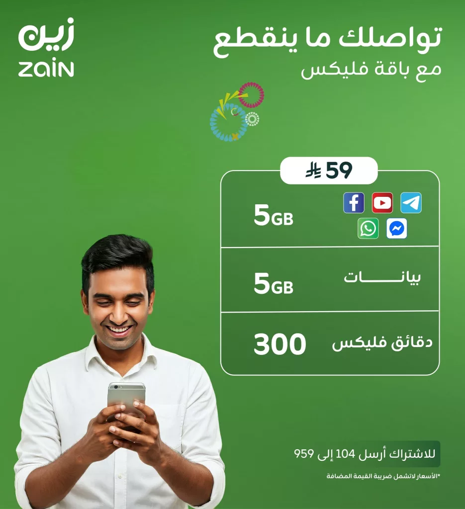 - 300 دقيقة فليكس يمكن استخدامها للمكالمات المحلية داخل شبكة زين أو لأي شبكة أخرى في السعودية